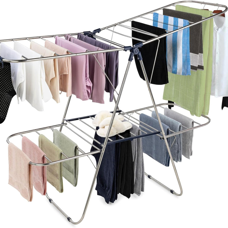 Tendedero de Acero Inoxidable | Plegable, Alas Ajustables y Clips para Calcetines